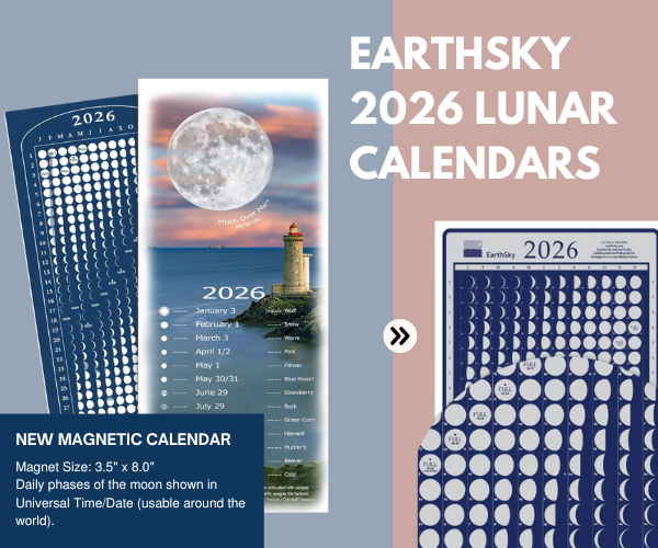 For the Southern Hemisphere, the Harvest Moon always comes in March or early April. But, it’s our understanding that the Southern Hemisphere doesn’t name its full moons as we do in the Northern Hemisphere. Do you know? If so, tell us your thoughts on Southern Hemisphere full moon names in the comments below.