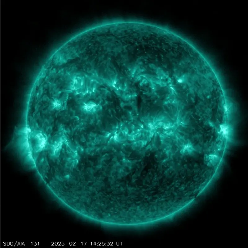 - Blasts from the sun: No significant Earth-directed coronal mass ejections (CMEs) were observed over the past day. However, a slow, faint CME from February 8 is still being analyzed for any potential glancing impact on Earth.