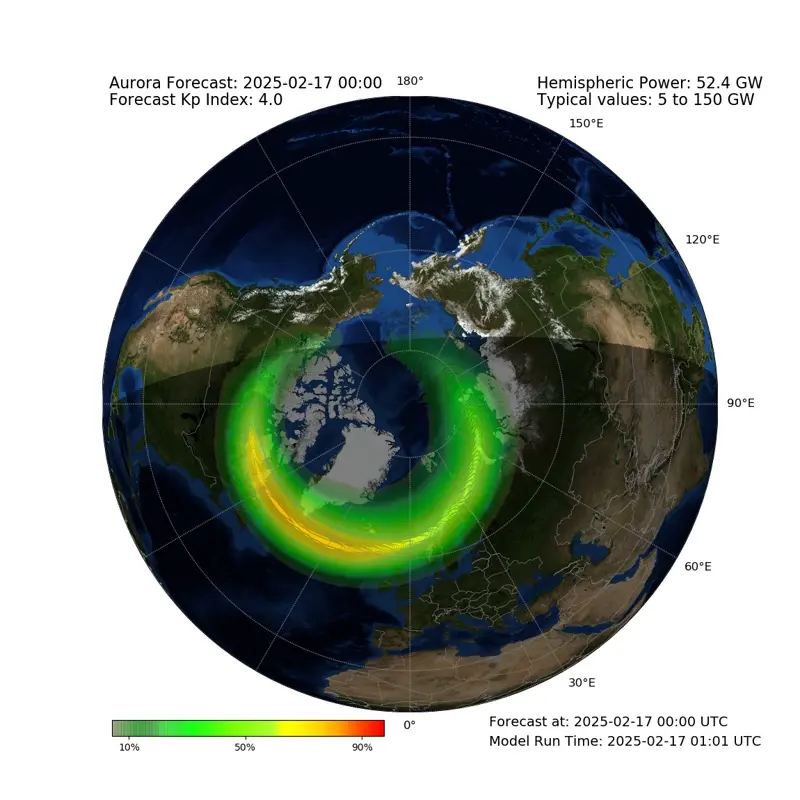 - Geomagnetic activity: The interplanetary magnetic field (a critical factor in creating auroras) was mostly active (Kp = 4) over the past day.