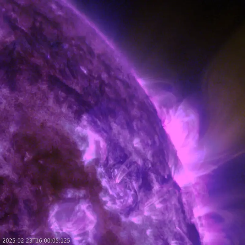 - Blasts from the sun? The large filament eruption we reported yesterday produced a CME, but, due to its location, initial analysis indicates it’s not coming toward Earth. The CME) associated with the C8.1 flare from AR3990 on February 19 caused a radio sweep Type II (553 km/s). Initial analysis shows it might deliver a glancing blow to Earth on February 24. Additionally, several smaller CMEs have been observed in the past day. One of these may deliver a glancing blow to Earth on February 23, but further analysis is needed to confirm its potential impact. Stay tuned for updates as we continue to monitor these solar eruptions.