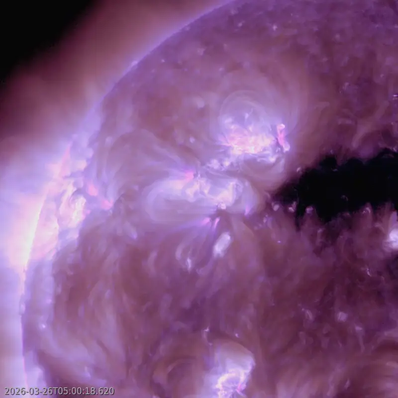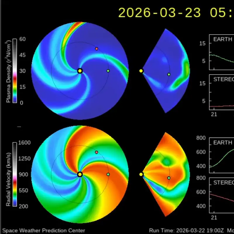 On the space weather side, conditions remained calm. The solar wind drifted back toward ambient levels, and the geomagnetic field stayed quiet throughout. But that calm may not last. A coronal hole high-speed stream should arrive by late March 29, potentially lifting geomagnetic activity to unsettled or active levels. So aurora watchers at high latitudes will have a reason to look up, as we head into the new week.