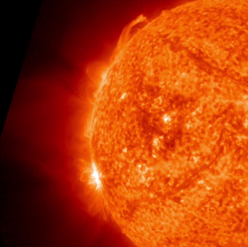 - Sunspot regions: Two numbered active regions are visible on the Earth-facing disk, while new magnetic activity brews just beyond the limb.