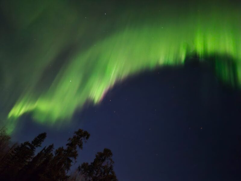 Surprise! We got a G1 (minor) geomagnetic storm last night, with auroras at high latitudes, beginning around 0 UTC on November 25. The stormy conditions stemmed from an early-arriving co-rotating interaction region (CIR), which is fast solar wind streams interacting with slower solar wind ahead of it. Long story short … the solar wind disturbed Earth’s magnetic field and pushed the Kp index (a measure of the disturbance) to level 5 during two three-hour synoptic periods. As of this writing, Kp = 5 remains ongoing. And here’s more exciting news! The coronal holes are still in a geoeffective position, where they are capable of affecting Earth. So active conditions with isolated G1 geomagnetic storming might continue through November 27. Did you see the auroras last night? Took photos? Share them with our community!