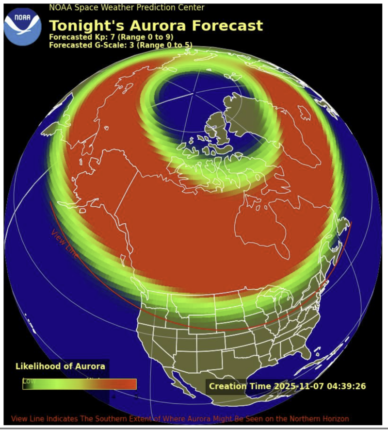 - November 3: Continued quiet to active levels as solar wind gradually stabilizes; no major disturbances expected.