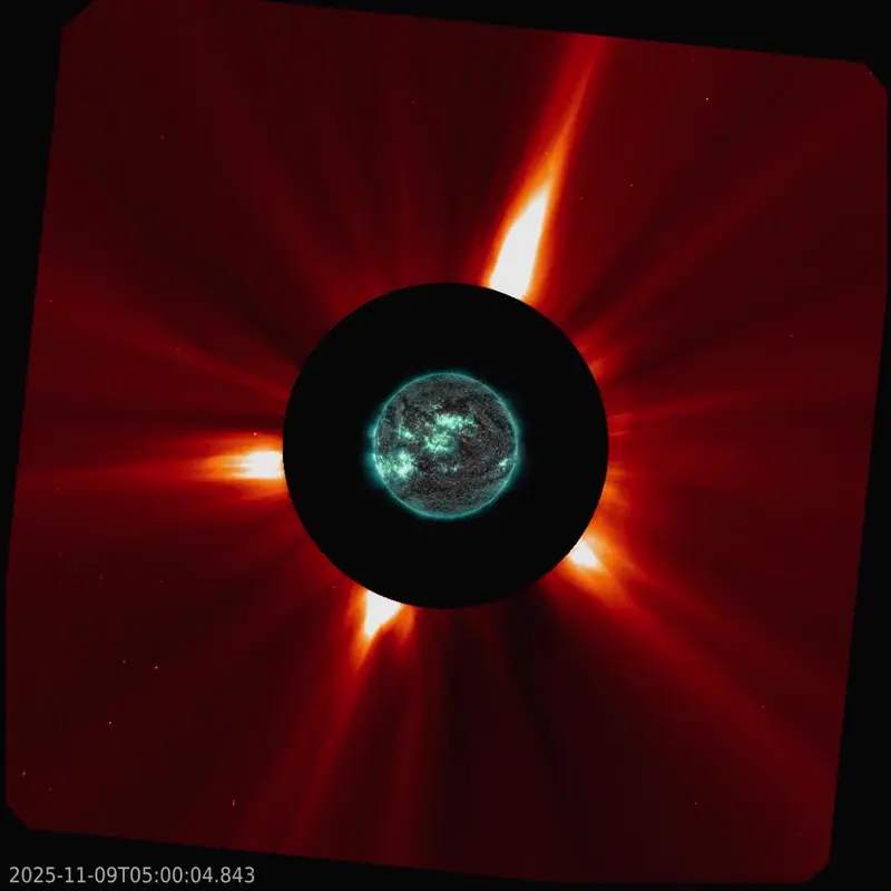 - The first CME appeared just after 11:00 UTC on November 2, likely originating from AR4274 before the region fully rotated into view. The eruption was directed eastward and is not expected to impact Earth.