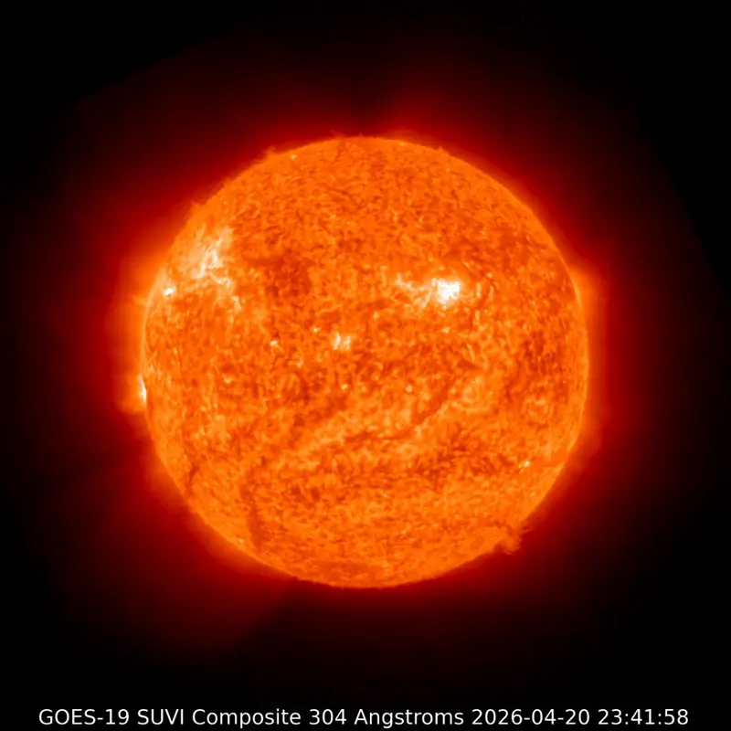 Blasts from the sun? Available coronagraph imagery showed no Earth-directed coronal mass ejections (CMEs) during the period. However, an approximately 30-degree-long eruptive filament lifted off the solar disk between 7:30 and 8:23 UTC on April 18, visible in GONG H-alpha and GOES-19 SUVI imagery. The associated CME erupted off the southeast limb, but modeling confirmed it will not impact Earth. In addition, a small chance remains for a glancing blow early on April 19 from a CME that left the sun on April 15. Forecasters expect this CME to pass south and east of Earth’s orbit, though a weak interaction cannot be entirely ruled out.